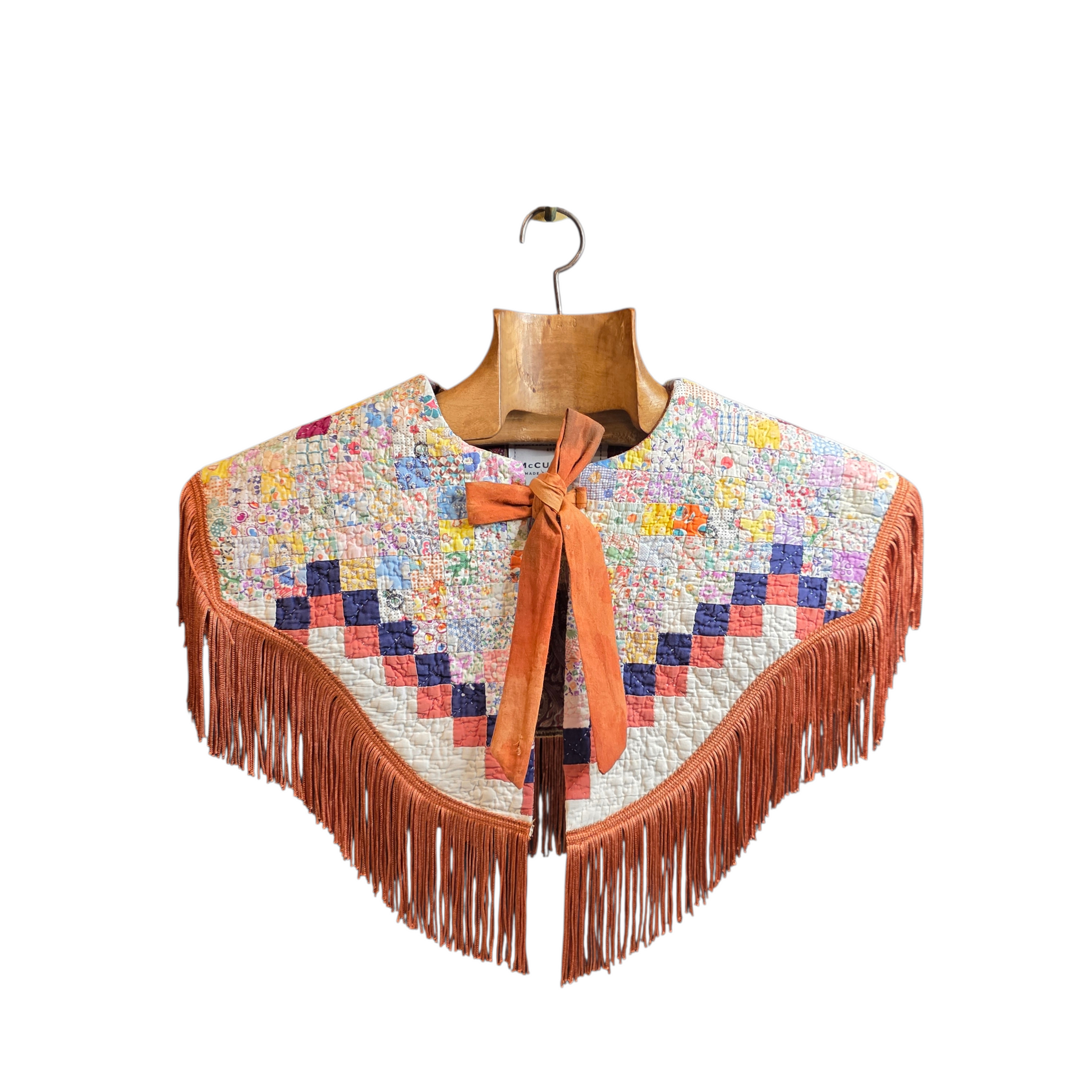 Western for the Weekend — Tie-On Fringe Capelet (Vintage Patchwork Quilt + Rust Fringe)
